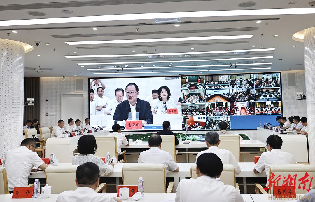 会议首先传达了习近平总书记对当前防汛抗旱工作作出的重要指示精神,视频连线了永州双牌水库防汛现场、湘水流域总控制站—湘潭水文站,并听取全省防汛备汛相关情况汇报。毛伟明指出,今年入汛以来,全省平均降水量604.4毫米,较常年偏多23%;尤其是6月8日进入雨水集中期以来,全省平均降水量129.3毫米,较常年偏多60.2%,汛情总体上呈现来势较猛、落区重叠、中小河流超警频繁等特点。面对严峻复杂的雨情汛情,各级各部门坚持预警在前、防范在先、救灾在早,部署调度“紧”、备汛工作“实”、防汛响应“快”、总体形势“稳”,修订完善各类预案2.3万余件,排查整治度汛风险隐患1.2万余处,培训乡镇及村级负责人近5万人,紧急避险转移、安置、救助5万余人,实现无重大人员伤亡和未发生重大工程险情。