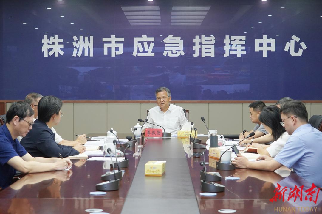 李殿勋在株洲市应急指挥中心听取全市防汛抗灾工作情况汇报。
