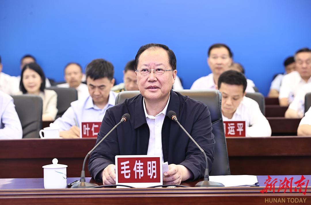 毛伟明在讲话时指出,要深入贯彻习近平总书记关于防汛抗旱的重要指示批示精神,充分认识当前防汛形势的复杂严峻性,彻底克服三峡建成后无大险的片面乐观思想、近几年有汛情无大灾的麻痹思想、把说了当做了的错误思想等“三个思想误区”,着力解决好在落实责任、落实工作、落实措施上存在的不够“实”、不够“准”、不够“快”“三个问题现象”。要锚定“三个确保”底线要求,即:确保遇设计标准内洪水时,不溃一堤一垸,不垮一库一坝,保证重要城镇和交通干线安全;确保遇超标准洪水时,保证大中型城市、大中型水库、重点堤垸和重要交通干线安全;确保暴雨山洪和次生灾害发生时,不再出现群死群伤。发挥好专家指导、干部组织调度、群众动员参与“三个重要作用”,把握好监测预报、应急预案、预警转移“三个重要环节”,开展“一市一单”“一县一单”风险提示和靶向指导;突出好重点地区、重点领域、重点人员“三个重点方面”,落实好水利工程、防范工作、储备力量“三个统筹调度”,全面布防、全面发动、全力以赴打好打赢防汛抗灾这场硬仗。