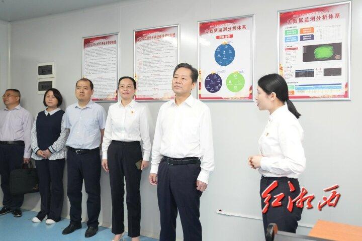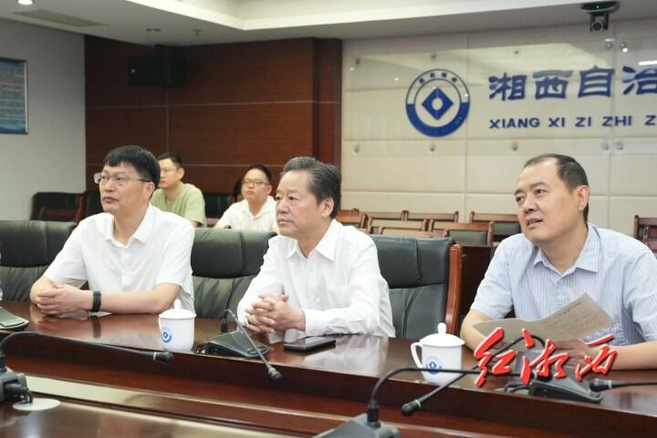 湘西网6月28日讯(全媒体记者 彭蕾)6月27日,湘西州委书记虢正贵到州财政局、州公共资源交易中心调研机关党建工作和党纪学习教育开展情况。州委常委、州委组织部部长、州委统战部部长贾珍文参加调研。