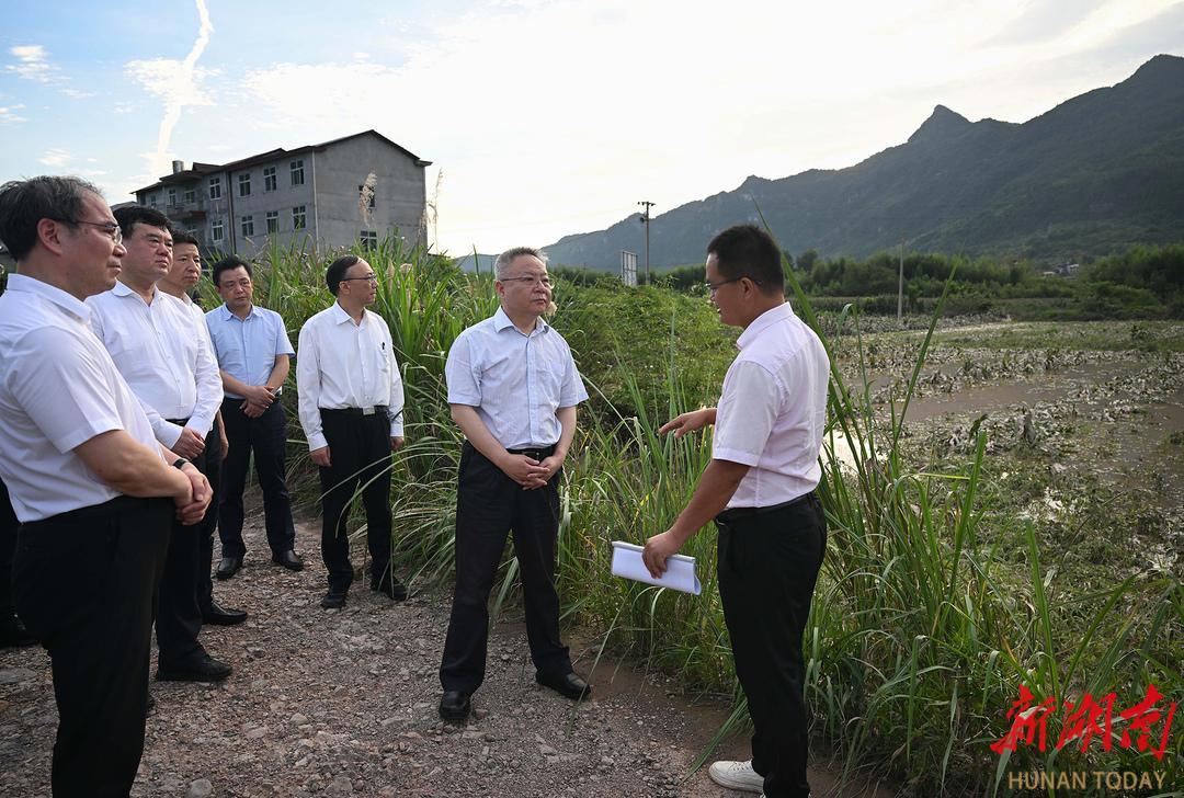6月30日,沈晓明在张家界永定区西溪坪街道禾家村察看因灾受损的农田。