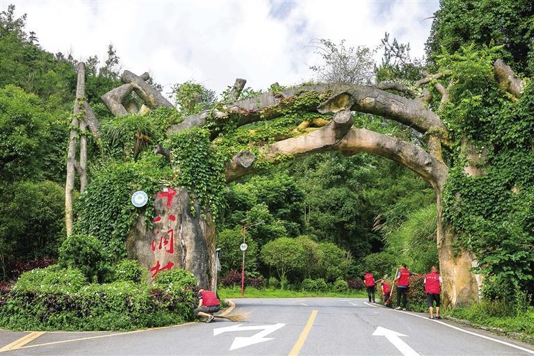 “雨后天晴,今天的任务是路面保洁、清理边沟、拔除杂草、设施维护,给进出十八洞村的游客和村民创造良好的道路环境……”村口处,花垣县公路建设养护中心副主任龙金星分配好养护任务后,十八洞农村公路养护队队员们立即带着清障工具展开行动。