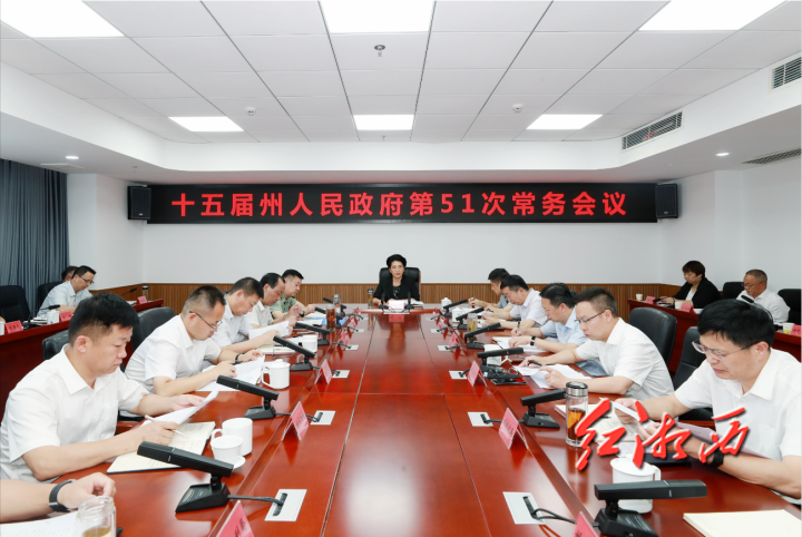 湘西网7月9日讯(全媒体记者 付丹)7月8日下午,湘西州委副书记、州长陈华主持召开十五届州人民政府第51次常务会议,传达贯彻习近平总书记对湖南岳阳市华容县团洲垸洞庭湖一线堤防发生决口作出的重要指示精神、在中央政治局第十五次集体学习时的重要讲话精神,传达贯彻李强总理对岳阳华容县团洲垸洞庭湖一线堤防发生决口作出的批示精神以及近期沈晓明书记、毛伟明省长对防汛抗灾工作作出的系列重要讲话和批示精神,听取全州防汛抗灾工作情况汇报。