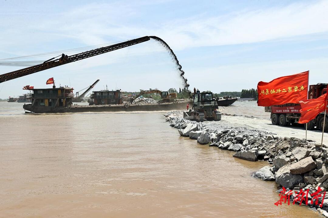 截至7月8日17时,团洲垸决口累计进占180.5米,缺口还剩45.5米。目前,每小时约有40台车、2艘船的石料投放,已累计投入石料自卸车3180台、大型驳船46艘,大大提升了施工强度和封堵效率。毛伟明一行乘船来到决口处察看作业进度。源源不断的卡车、驳船正忙着向决口处投放石块等物料,毛伟明指出,决口封堵是抢险救援的焦点,各方都在关注。要科学调配集结堵口物料,发挥“水陆空”协同作战能力,24小时不间断作业,多投一方是一方,能抢一分是一分,争取尽早合龙,尽快夺取抢险主动权。