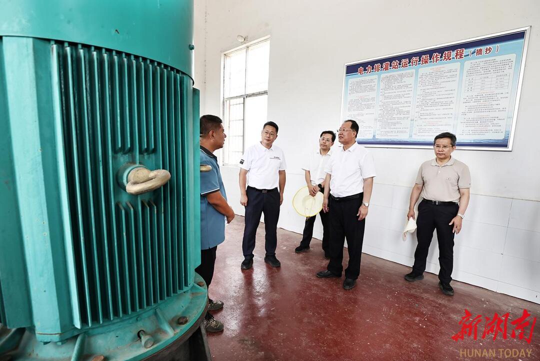 团南电力排灌站是团洲垸唯一没有被淹的电排站,4台机组近期已完成全面检修,保持随时待命状态,待决口合龙就能启动排涝。毛伟明来到现场查看设备运行状况并强调,要科学制定抽排预案,决口封堵合龙后就启动抽排工作;要保障泵组平稳安全运行,及时抢修垸内其他被淹机组,增加排涝设备和能力,全力加快排洪速度。