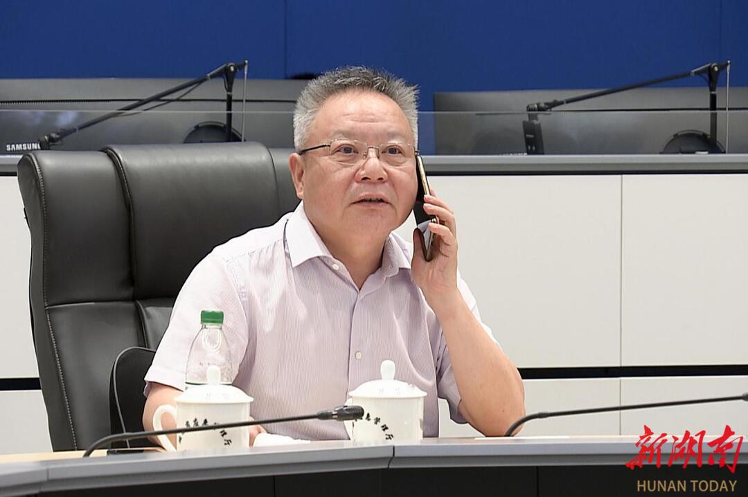 7月8日,沈晓明视频察看调度团洲垸洞庭湖大堤决口封堵合龙工作。
