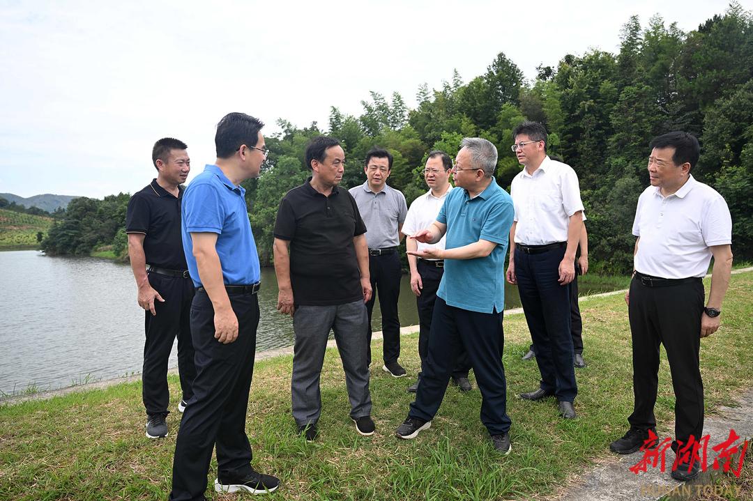 7月9日,沈晓明在崔家桥镇夏家冲水库堤坝检查督导防汛工作。