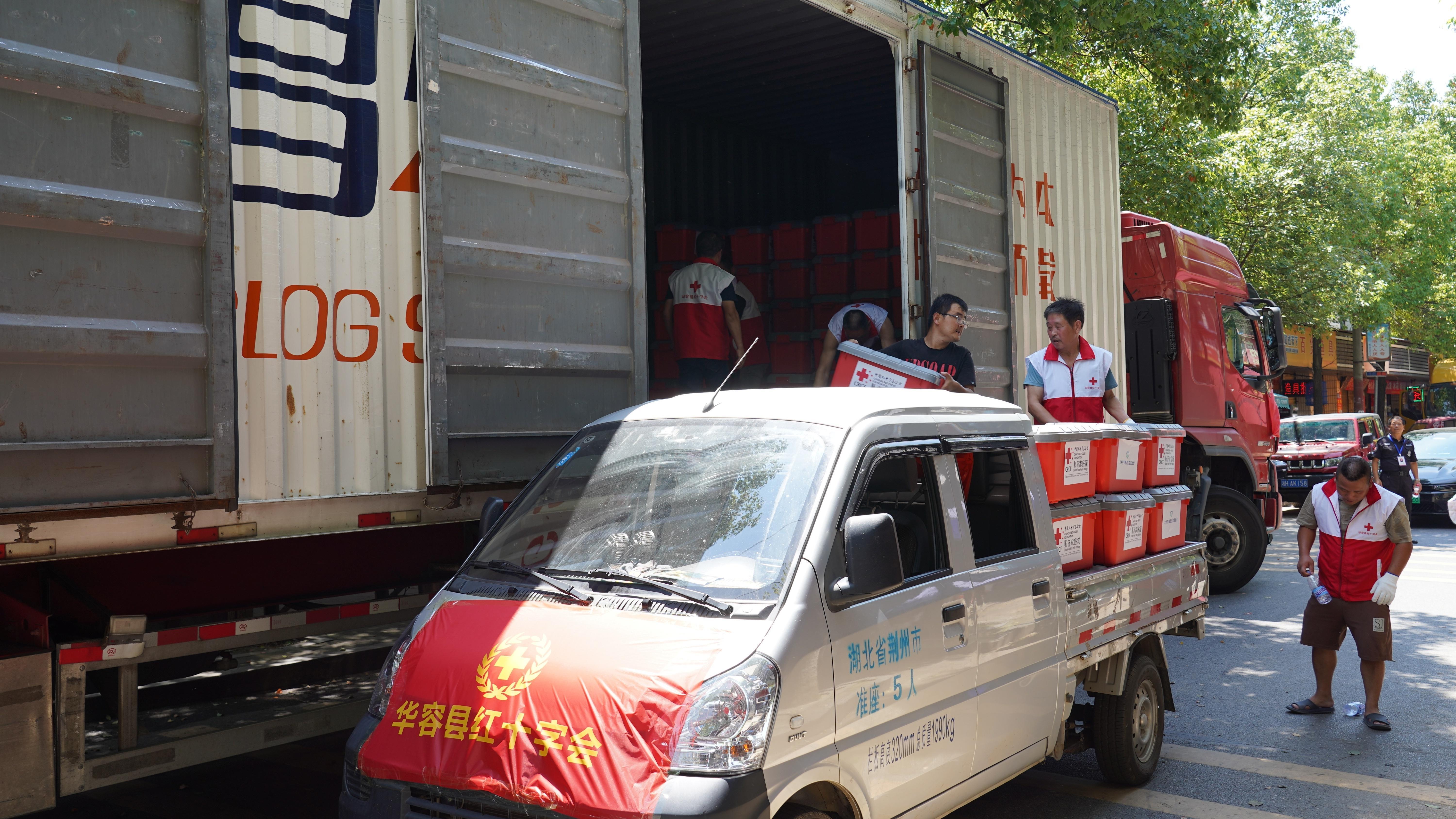 灾害发生后,湖南省紧急向华容调配5000个应急包、3200张折叠床及被褥等物资,社会各界人士捐赠物资也持续不断运往各安置点。