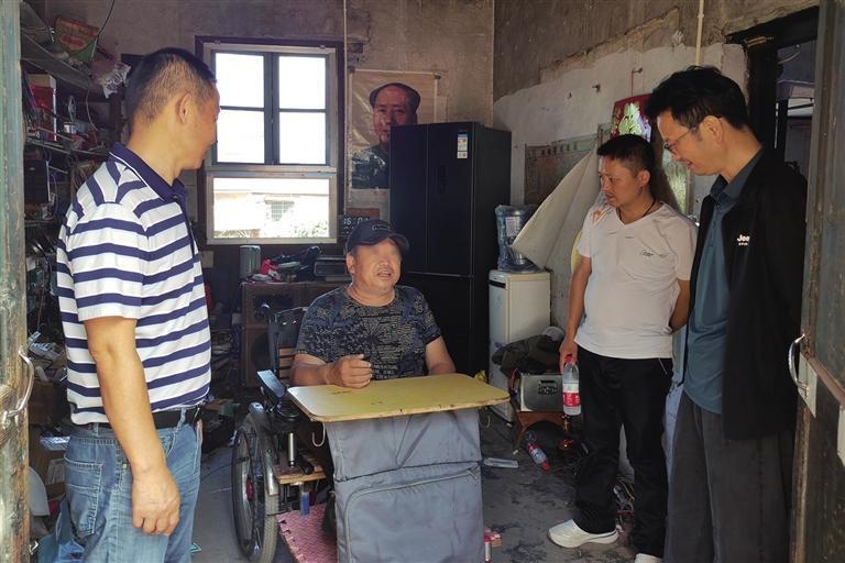 州、县残联相关负责人到张玉(左二)家里了解无障碍改造进度并听取意见。