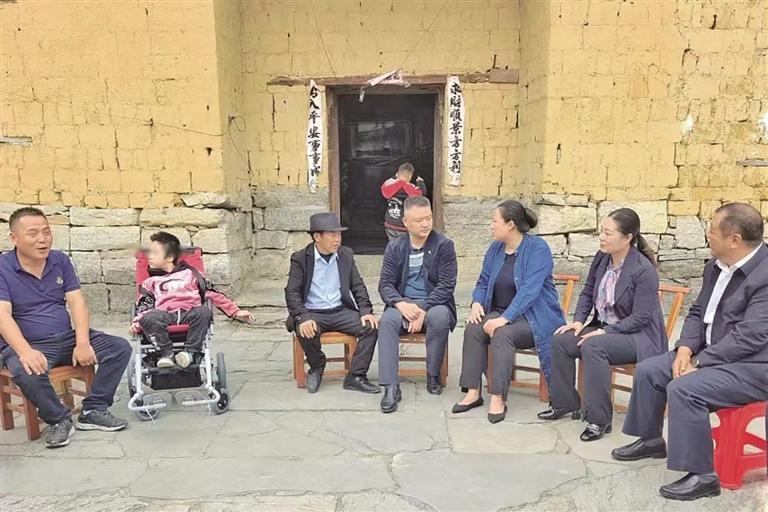 省、州、县残联领导在凤凰县“家改户”吴家生(左三)家中开展调研工作。 图片由州残联提供