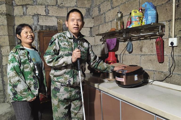 花垣县一级视障残疾人刘军胜现在能够在改造后的厨房独立做饭,自己很满意。
