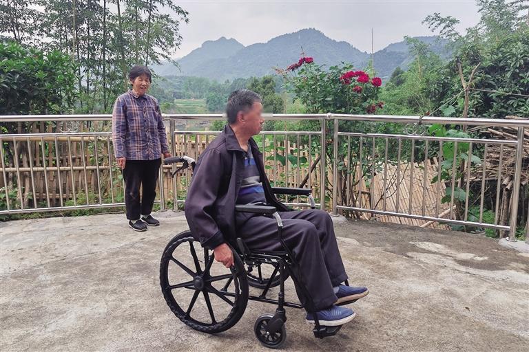 保靖县残疾人李清友以前常年呆在室内,如今他在装有安全护栏的院坝里面安心地推着轮椅晒太阳、搞运动。