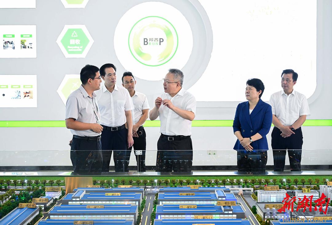 7月10日,沈晓明来到湖南邦普了解废旧电池回收绿色循环利用等情况。