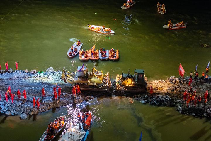 “堵口作业极具挑战。”中国安能集团总工程师张利荣说,三道难题摆在面前:决口宽、水位深、流速快,作业过程复杂;施工工程量大、作业面小,交通不畅;封堵用的块石等物料运距远,供应压力大。