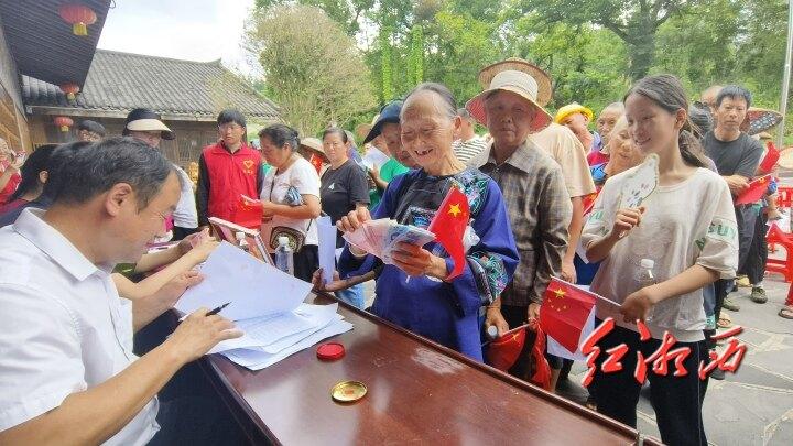 通过召开党员大会、村民代表大会,十八洞村出台《集体经济收益分配管理暂行办法》,在保障基础设施建设、提供公共服务、援助弱势群众等基础上,拿出部分村集体经济收益用于二次分配,即给全体村民“分红”。