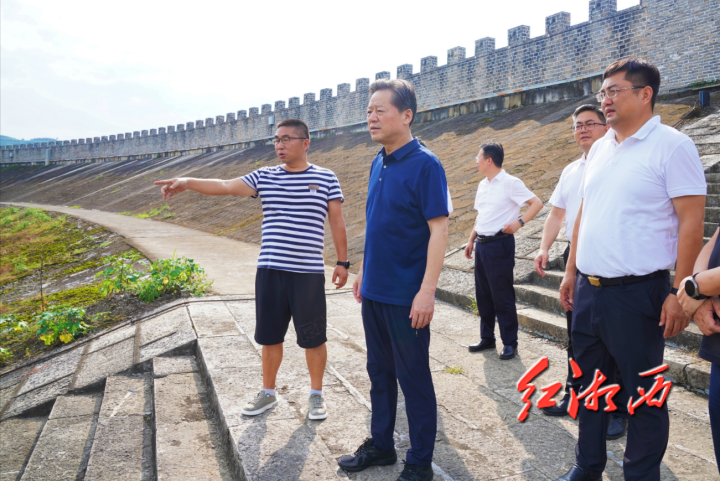在保靖县碗米坡水库检查督导防汛抗灾工作。本组图片由团结报全媒体记者刘炜摄