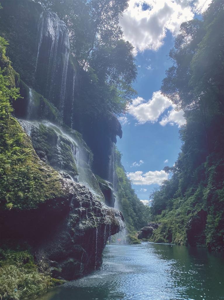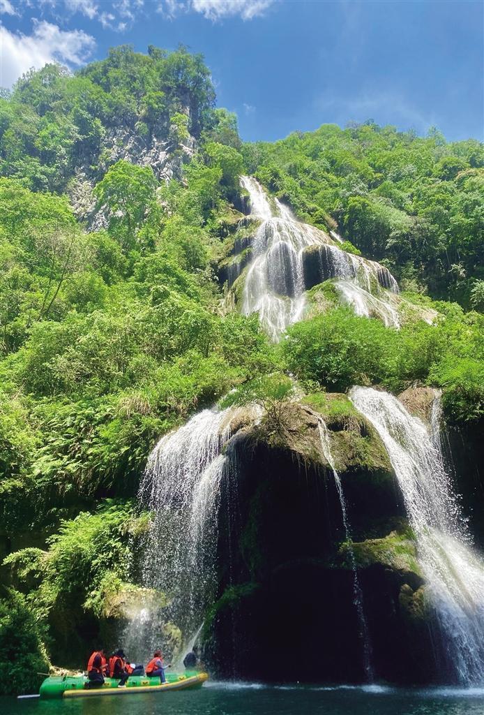 猛洞河漂流沿途有大大小小20处瀑布,从瀑布下穿过,倍感凉爽。