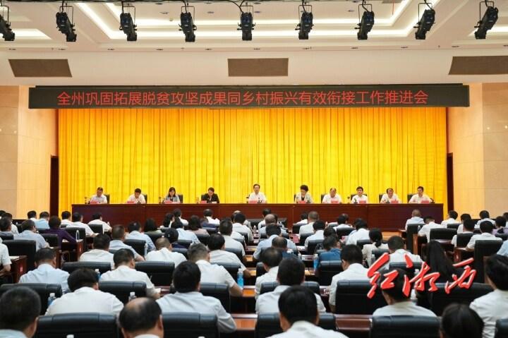 虢正贵指出,推动巩固拓展脱贫攻坚成果同乡村振兴有效衔接,是党中央作出的重大战略部署。全州各级各部门要深学细悟笃行习近平总书记重要讲话和重要指示批示精神,学习贯彻党的二十届三中全会精神,深刻认识做好有效衔接工作的重要性、艰巨性、复杂性,坚决扛牢首倡地的政治责任,坚持慎终如始、善作善成,坚持真抓实干、务求实效,以首倡之地的首倡之为抓好有效衔接工作,以实际行动深刻领悟“两个确立”的决定性意义、做到“两个维护”。