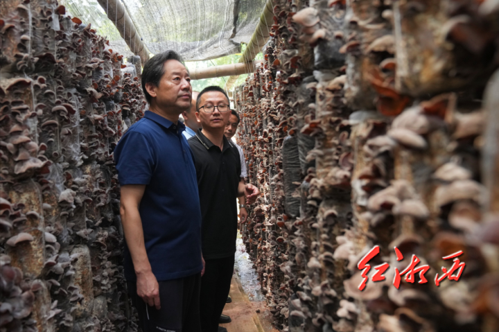 虢正贵在高峰镇高望界村调研食用菌种植情况。