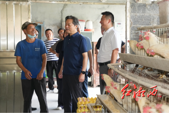 虢正贵在高峰镇高望界村调研禽畜养殖情况。