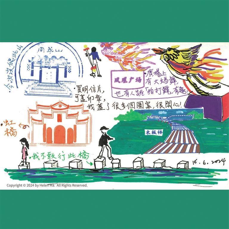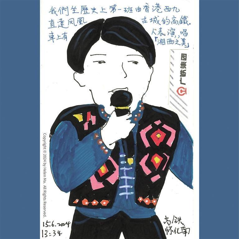 今年6月15日,香港西九龙至大湘西高铁定制专线正式开通,乘坐高铁来到凤凰古城的香港旅客马凯君一家人游玩后,对这次旅游体验印象深刻,并亲手绘制出25页的凤凰古城“旅游手账”,记录下重要的画面和心理感受,呈现了凤凰古城五彩斑斓、生动可爱的一面。