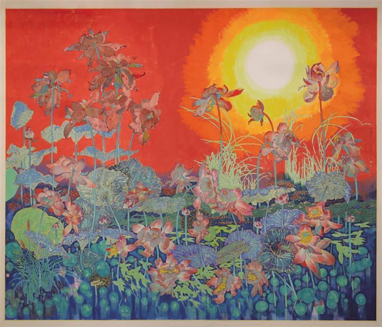 2009年9月, 黄永玉为荣宝斋大厦落成,历时四十余天,创作了巨幅画作《红荷图》,画作色彩厚重喜庆,充满撼人心魄的张力。先生在上世纪五十年代就与荣宝斋合作交往,在那里创作了木刻水印《阿诗玛》等著名作品。他将这幅5米乘6米的《红荷图》巨作赠与荣宝斋,在当时社会及文化艺术界引起了极大的轰动。左为画作《红荷图》,右为黄永玉创作《红荷图》时现场工作照。