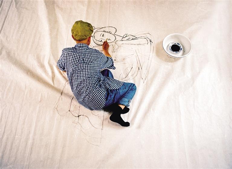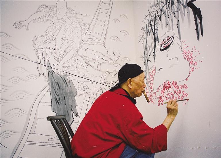 黄永玉的故乡是凤凰,是湖南,他也是湘楚文化的杰出代表。他的画作被大家广泛认可,是必然的。1997年,先生受邀为湖南省委接待处九所宾馆创作巨幅画作《西洲曲》,这是他忘情挥笔时的背影。
