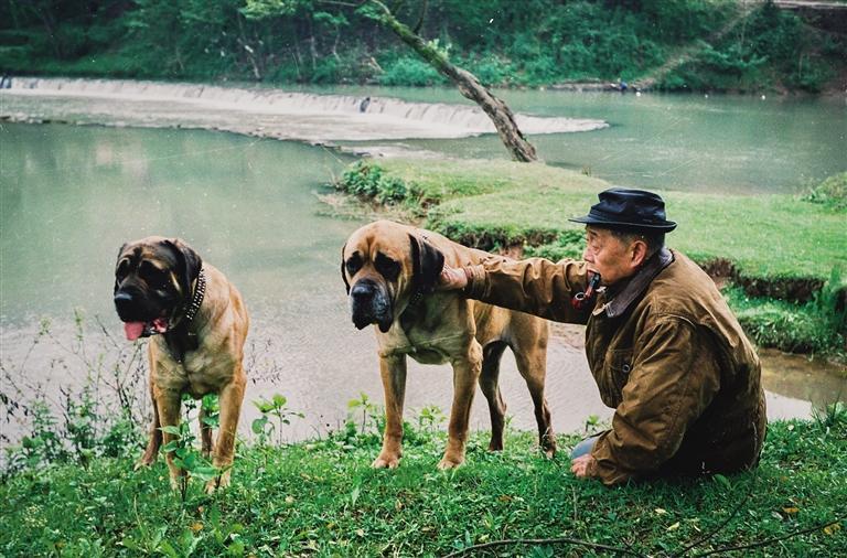 1996年,黄永玉和家人从香港回到了故乡凤凰,此外,他还带回了爱犬卡米和里戈。那段时光,让先生兴致很高,以至于让他生出“感觉自己本事用完了,回到故乡就又有了”的慨叹。这是停留凤凰期间,在城郊的官庄附近春游,大家一起杀羊“打波斯”(指祈祷、还愿)时,先生与爱犬互动的情形。