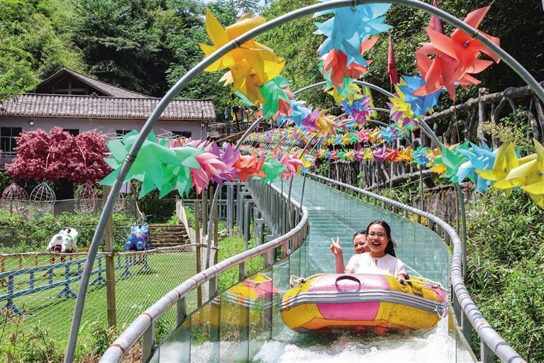 随着城市生活节奏加快,家长们越来越意识到与孩子共度时光的重要性。于是,大坡村亲子游项目应运而生,玻璃水滑道、儿童乐园、天空之境等新潮游乐项目在乡村的土壤上长了出来。在风景宜人的大坡村体验这些项目,还真别有一番趣味。