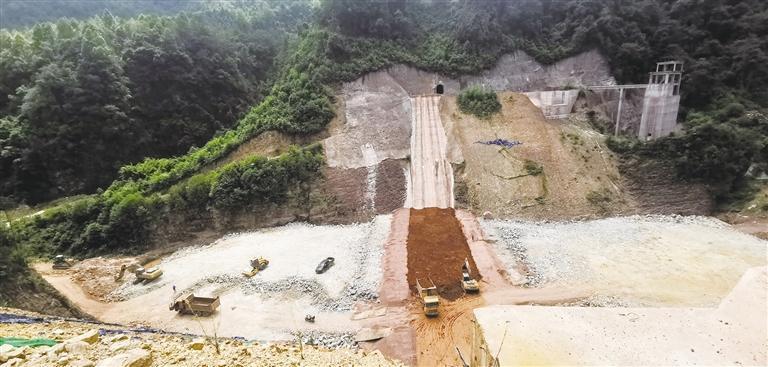 8月31日,保靖县毛沟镇茶园河巴科水库建设现场,施工人员利用机械在抓紧时间进行施工。该大坝防洪标准按 30 年一遇洪水设计,300 年一遇洪水校核。挡水建筑物:坝顶高程 430米,最大坝高 52米,坝顶宽 8米。该水库建成后将为保靖县城居民提供生活用水水源。 团结报全媒体记者 田宏贵 摄