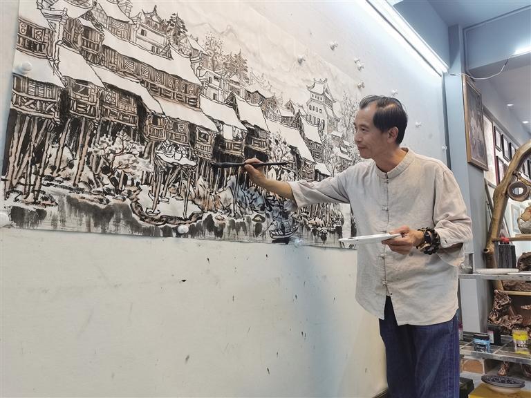 人在山水,心在丹青。心在丹青的陈永健,一说完故事又向画纸走去。