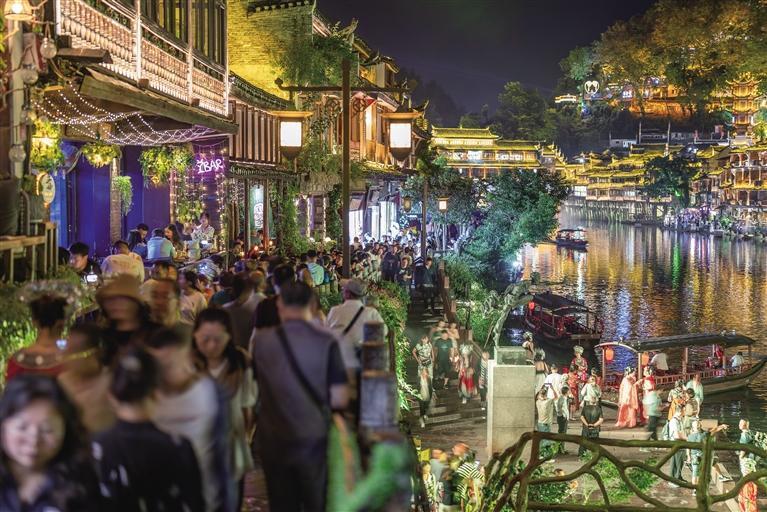 凤凰古城夜色之美让游客沉醉。 团结报全媒体记者 张谨 摄