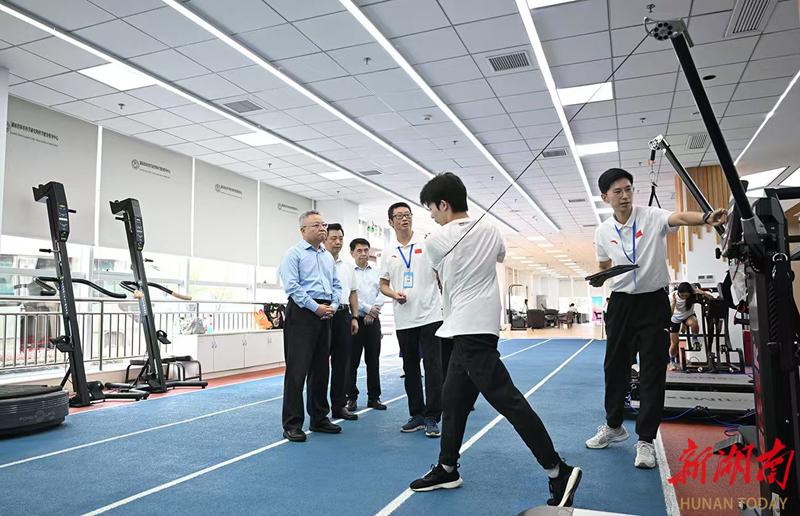 在省体操运动管理中心、省体育科学研究所数字化体能训练中心、湖南体育产业集团有限公司,沈晓明深入了解竞技体育发展、体能训练数字化建设和体育产业发展等情况,指出要坚持“开门办体育”,完善优势项目发展机制,深入挖掘和培育潜力优势项目,不断提高我省竞技体育水平;要进一步丰富消费形态,大力发展体育赛事,做大做强体育制造业,推动体育产业实现更大发展。