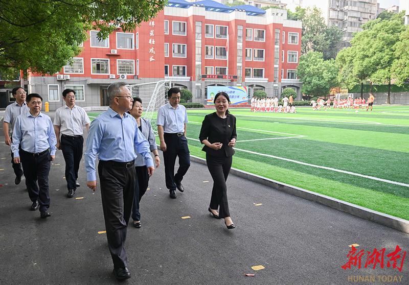 在长沙市雨花区德馨园小学、雅礼中学,沈晓明重点了解校园特色体育项目发展、体育后备人才培养等情况,指出要持续深化体教融合,坚持文化学习与体育锻炼并重,让运动的孩子会读书、读书的孩子会运动,促进青少年全面发展。