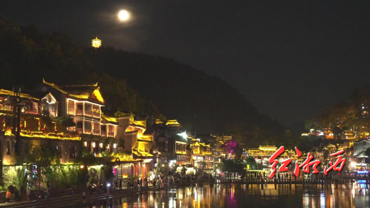 9月17日晚,中秋佳节。凤凰古城在月色与灯光的映照下,展现出如梦如幻的独特魅力。