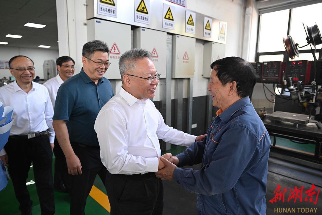 “七一勋章”获得者艾爱国在焊工岗位默默耕耘50多年,攻克了数百项技术难关。在湖南华菱湘潭钢铁有限公司,沈晓明参观了艾爱国焊接实验室,详细了解艾爱国日常工作生活等情况,嘱咐他注意劳逸结合,在保重身体的同时继续培养好徒弟,为企业和产业高质量发展作出更多贡献。