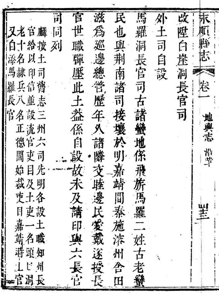 第一,马罗土司,它是不属以上两个土司的。乾隆《永顺府志》(卷之十二,P6)载,“马罗洞系古老蛮马、罗二姓地,秦(奏)施溶州舍田滋为巡边总管”。这个记载初在乾隆《永顺县志》里,被此府志转载。这部《永顺县志》在“卷一·地舆志”(P41)中记载永顺司地:“其在龙山者,旧为白岩洞长官司,并土司自设之马罗洞长官,虽今昔县属不同,总为永顺司地境也。”又载(P43):“外——土司自设:马罗洞长官司,古诸蛮地,系飞旗。马、罗二姓,古诸蛮民也。与荆南诸司接壤,于明嘉靖间秦(奏)施溶州舍田滋为巡边总管,历年久,诸邻交睦,边民爱戴,遂授长官世职,弹压此土,盖系自设,故未及请印、与六长官司同列……嘉靖时,土官又自添马罗长官。”在公元1712年制的永顺宣慰使彭泓海德政碑(以下简称“泓海碑”)上,马罗洞是与白岩洞同列于“州司”一栏的,说明白岩洞与马罗洞互不隶属。这二志若不这么记载,许多龙山人现在可能都不会知道有这个马罗土司,但我去田野调查时,此处的一些年长的村民还是知晓其地域即今石羔街道的大部分,2014年之前为石羔镇与三元乡,治所为遥见坪(今石羔街道尧坪)。这个马罗土司,是永顺宣慰司直接奏请田滋为巡边总管,直属于永顺土司,可能用来弹压、防守鄂西的散毛、大旺、盘顺、东流、腊壁、施南、东乡、忠建、高罗、忠峒、木册、容美等土司,特别是鄂西摇把洞长官司向氏土司及后人(治所曾在今宣恩县东北万寨乡石河心村)的屡屡挑衅,而其罗姓可能是古罗国的一支,其地可能是古罗国的一部或后裔的占据地——潘光旦在《湘西北的土家与古代的巴人》(1955年11月中央民族学院研究部编,《中国民族问题研究集刊》第四集,P31-32)一文有类似表述,只是未找到具体位置在此。