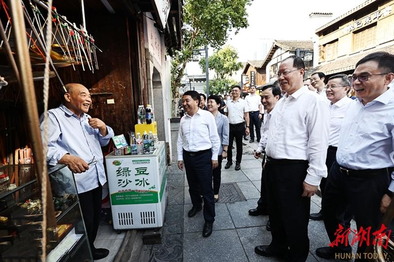 毛伟明、罗文一行在长沙市太平老街检查。