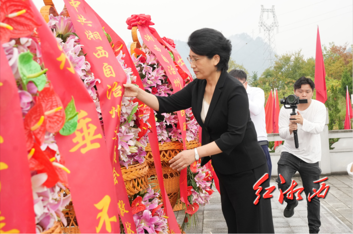 湘西网10月4日讯(全媒体记者 彭蕾)9月30日,湘西州在吉首烈士公园隆重举行2024年烈士纪念日向人民英雄敬献花篮仪式。州领导陈华、吴凌频、李平、杨彦芳、何锋、贾珍文、向邦伟、周立志、易长运等与各界代表一道,共同缅怀先烈,向人民英雄敬献花篮。