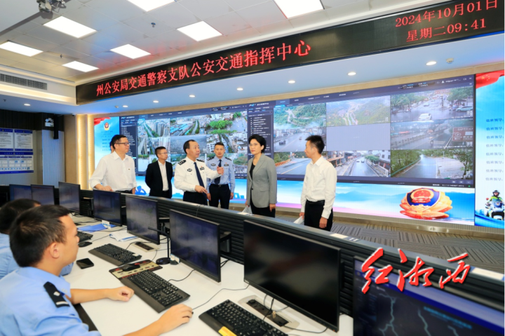 陈华来到州公安交警支队指挥中心,通过实时监控视频察看全州道路交通情况,仔细询问节假日期间交通流量、警力安排等情况。她指出,要盯紧看牢重点时段、重点路段,科学布置执勤警力,科学指挥调度,科学引流分流,盯住农村红白喜事占道摆酒、酒驾醉驾及超载超限超速引发的安全问题,全力做好全州道路保安全、保畅通工作。