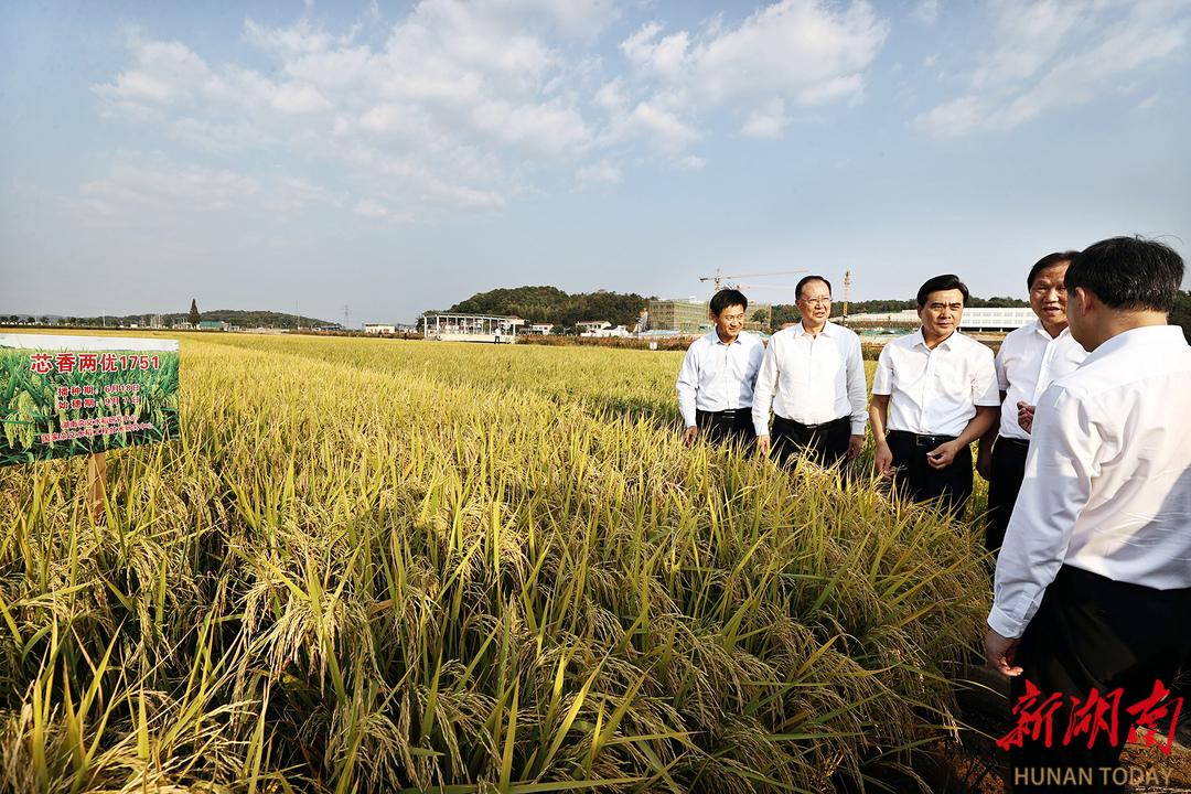 毛伟明在国家杂交水稻综合试验(长沙)基地调研水稻新品种培育工作。