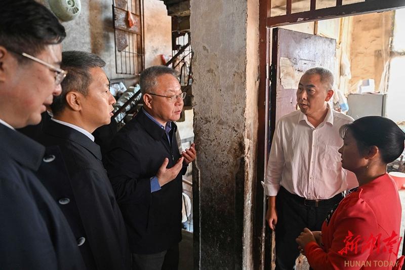 调研中,沈晓明来到涟源市蓝田街道工农路一栋危房现场暗访。该栋楼房外墙裂痕明显,房屋顶层大面积损坏,2022年鉴定为D级危房,但至今楼内仍住有2户居民。沈晓明强调,要始终把保障群众生命财产安全摆在首位,常态化开展房屋安全隐患排查整治,确保不漏一栋、不落一户。