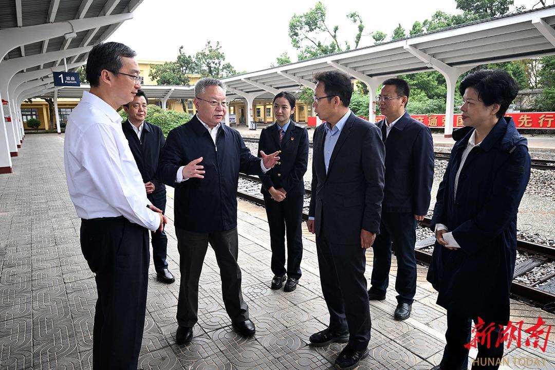 10月14日,沈晓明在韶山火车站调研红色研学专列开行情况。