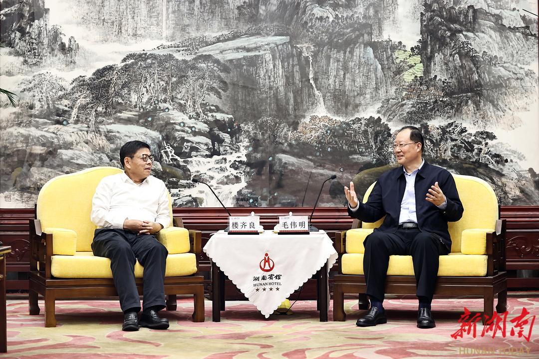 毛伟明对中国通号长期以来给予湖南的大力支持表示感谢,并简要介绍全省经济社会发展情况。他说,当前,湖南正深入贯彻习近平总书记考察湖南重要讲话和指示精神,加快构建“4×4”现代化产业体系,轨道交通、低空经济是重点发展领域。目前,湖南已形成集聚程度高、产业规模大、产品谱系全、创新能力强的轨道交通产业集群,2023年产业总产值突破1600亿元、居全国第一。作为全国首个全域低空空域管理改革试点省份,湖南圆满完成3年改革试点任务,催生出12项全国第一的改革成果,全省在册通用机场总数达20个,通航飞行时间、经营性通航公司、通航制造业营收分别为改革前的3.33倍、1.68倍、1.65倍。毛伟明表示,希望中国通号充分发挥在轨道交通和低空经济领域的技术、人才、管理等核心优势,与湖南在高端装备制造、智能交通、低空智能管控、智慧城市建设等领域开展深度合作,助力湖南轨道交通“加速布局”、低空经济“振翅高飞”。湖南将积极拓展应用场景、做好服务保障、营造一流环境,全力支持中国通号在湘发展。