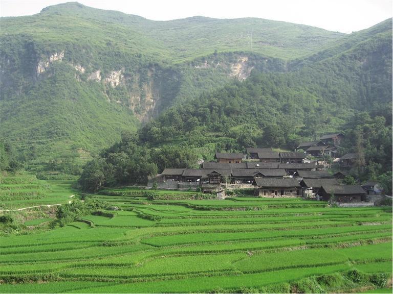 龙鼻嘴各个寨落的房屋稍显拥挤,堂屋开着后门,火床和堂屋间不装板壁隔开,火床前开三个敞口窗,配上上下移动的窗门板。院落用篱笆和岩石砌成围墙,家境优渥的人家,还会铺上石板院坝,建一个有屋脊的槽门,或者打榫穿枋的楼门,旧称“保家楼”。
