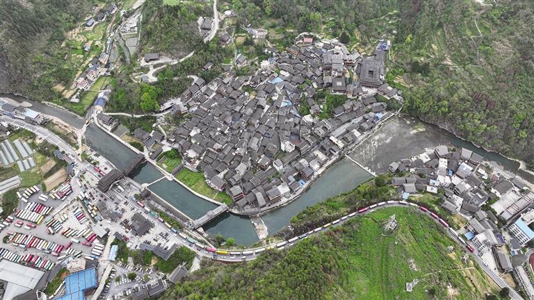 如今,有龙鼻和龙嘴巴形状的岩壁上,修筑了车路和火车路,已然没了先前的气场。旅游开发,苗家人别出心裁,在岩壁上面挂了一条人工瀑布。如此,宽宽的车路,一河的清澈,鳞栉村房沿着山坡延伸,老街连接着河岸,连接到车路和城楼,映衬着龙鼻嘴四季丰腴的生活。