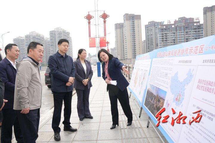 在里耶(秦简)博物馆,刘涛认真听取秦简保护研究利用及旅游产业发展相关情况介绍。他说,里耶秦简是享誉世界的文化品牌,具有重要的文化价值,要深度挖掘、保护、开发好历史文化资源,做好保存、解读、研究等工作。“龙凤”呈祥比翼飞,湖南省龙山县与湖北省来凤县共同谱写了跨省经济协作示范篇章,刘涛来到两个县城交界处的湘鄂情大桥,详细了解武陵山龙山来凤经济协作示范区规划、发展情况,要求龙山县做好城市发展规划,加强风貌协调整治,深化区域协作,推进龙凤融城,实现共同发展。在茨岩塘湘鄂川黔革命根据地纪念馆,刘涛详细了解红色资源保护利用、红色旅游发展、爱国主义教育基地建设等情况,要求大力弘扬光荣革命传统,深入挖掘红色资源、擦亮红色名片,从党的光辉历史中汲取奋进力量。