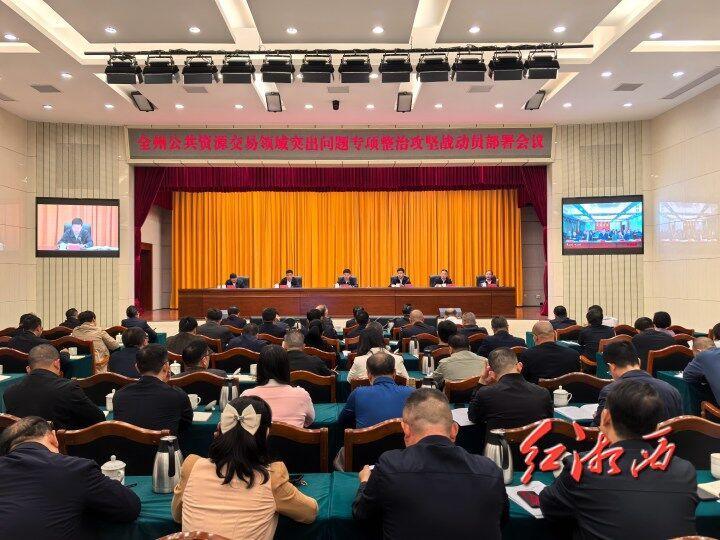 湘西网11月7日讯(全媒体记者 李再兴)11月6日,湘西州公共资源交易领域突出问题专项整治攻坚战动员部署会在吉首召开。州委书记刘涛主持会议并讲话,强调要深入学习贯彻党的二十届三中全会及习近平总书记关于党风廉政建设和反腐败斗争的重要论述精神,把思想和行动统一到党中央决策部署和省委、省政府工作要求上来,认真落实全省专项整治攻坚战动员部署会要求,突出问题导向、勇于攻坚克难,坚定坚决打好打赢这场攻坚战,打造优质高效、规范公平、阳光透明的交易环境,护航全州高质量发展。