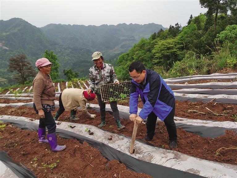 2020年,记者石秋云(右一)在古丈县岩头寨镇磨子村蹲点采访。