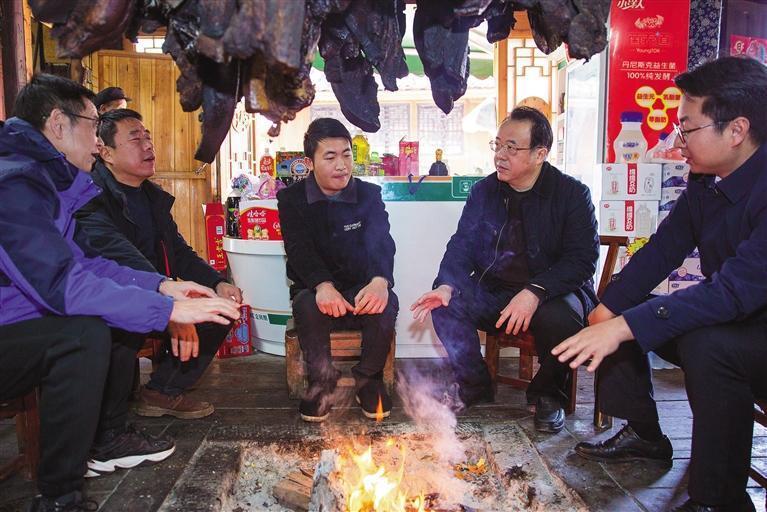 2023年1月29日,团结报社社长、总编辑田应明(右二)在花垣县十八洞村采访。